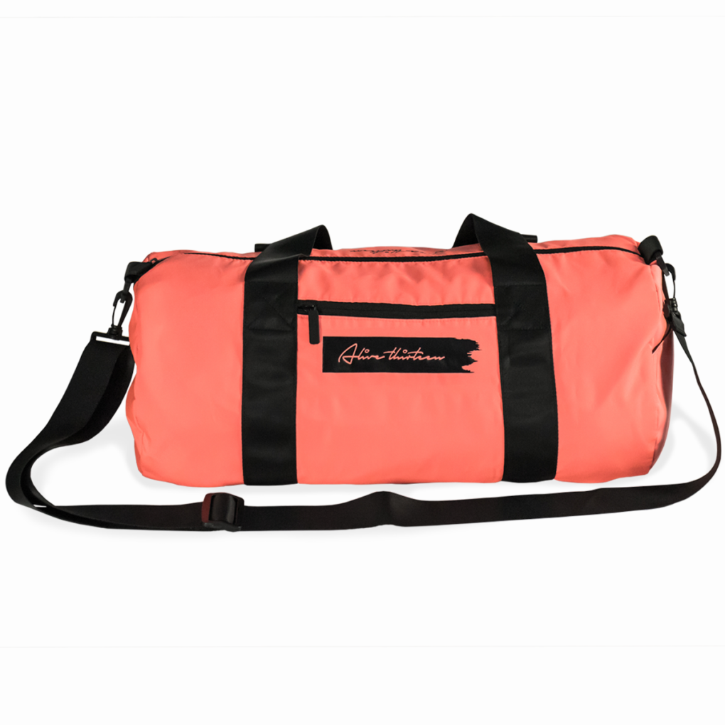 Hinten ein Alive Schriftzug in Weiss Diamond Glitzer und einem Thirteen Neon Coral Schriftzug. Alle Drucke in Weiss Diamond Glitzer und Neon Yellow. Unisex. Erhältlich in 4 Farben.