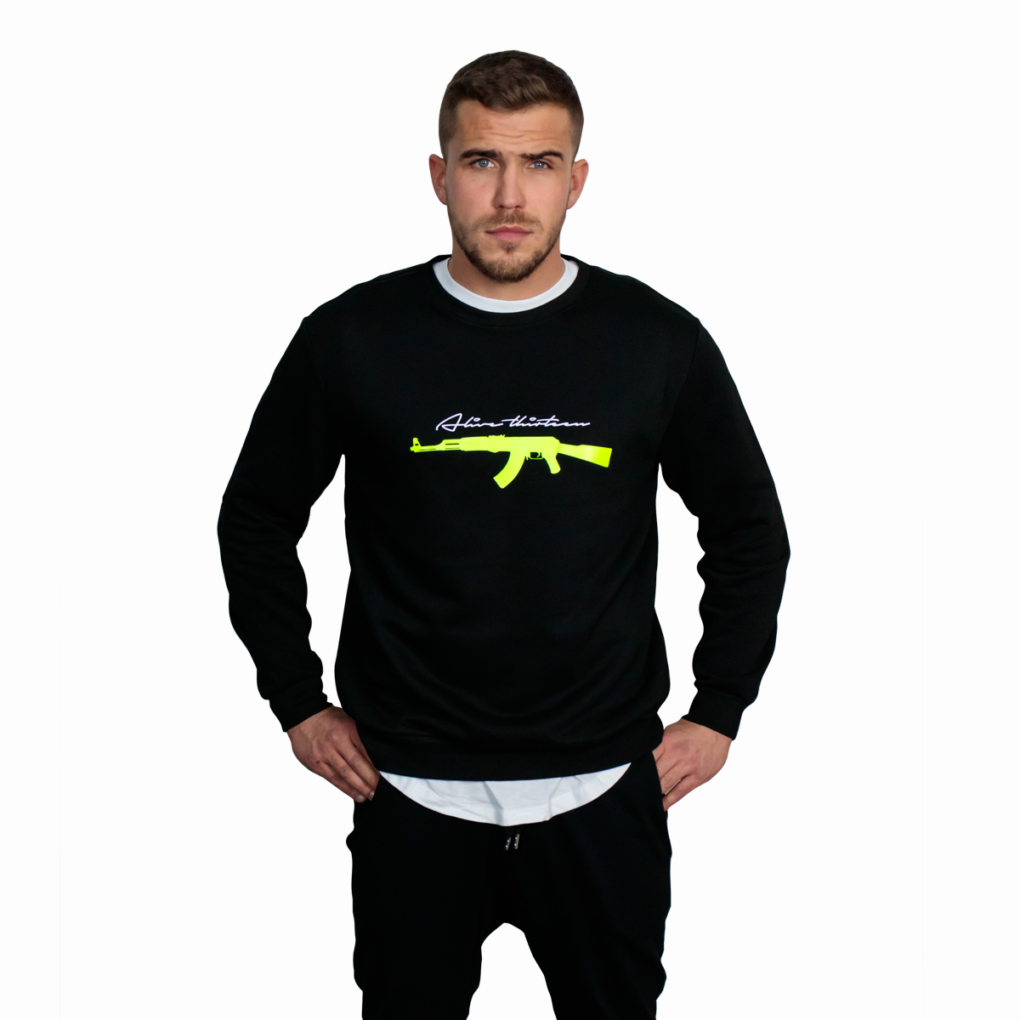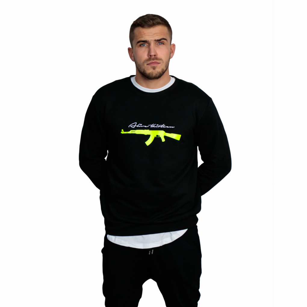 Hinten ein Alive Schriftzug in Schwarz Diamond Glitzer und einem Thirteen Raspberry Schriftzug. Alle Drucke in Schwarz Diamond Glitzer und Raspberry. Unisex. Erhältlich in 4 Farben.